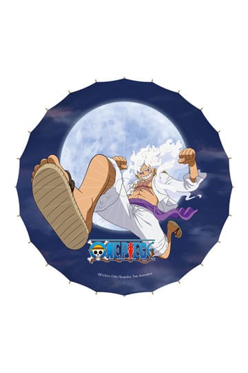 Este Parasol de papel de Monkey D. Luffy en su Gear 5th no es solo un accesorio, es una declaración de aventura. Fabricado en bambú y papel de alta calidad, con licencia oficial, este parasol captura toda la energía y locura de Luffy en su forma más poderosa.