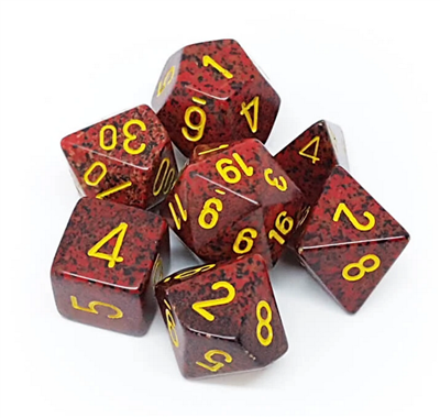Set de 7 dados en negro y rojo